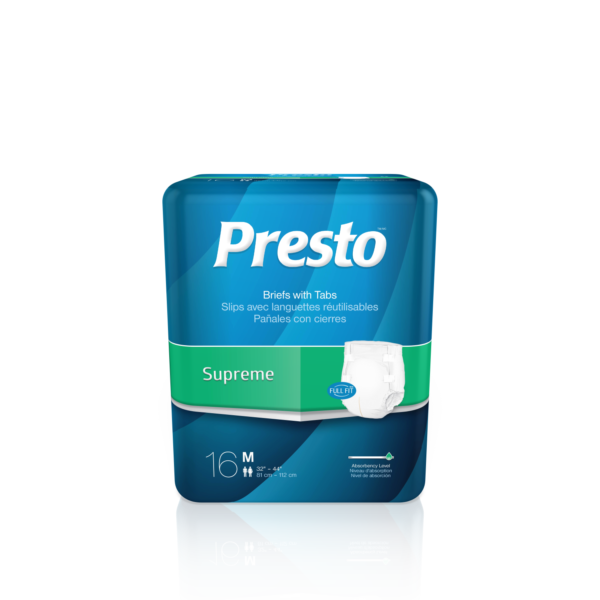 Presto Plus Medium Brief. Sold by the case. Each case includes 6 packages with 16 items.